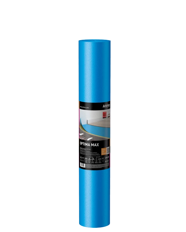 Optima Max er en mellomklasse underlag som har en god trinnlyddemping og varmeisolerende effekt mot billigere underlag. Egner seg i hovedsak på undergulv av trebaserte plater som ikke avgir fuktighet. Skal du bruke Optima Max på underlag av betong, må du legge fuktsperre først.