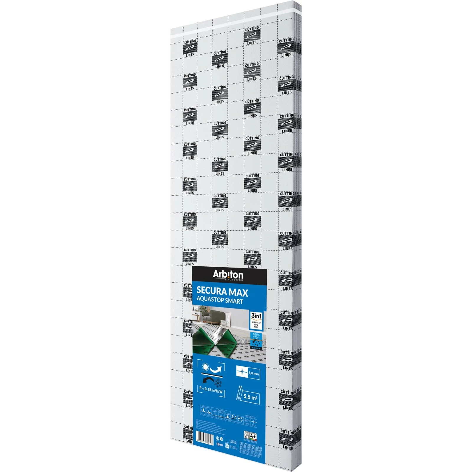 5,5 m2 pr pakke. ( leveres i sammenhengende foldede lag i pappkartong )