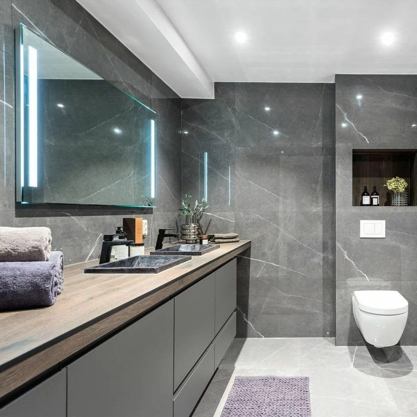 Flisen har rettskårne kanter, noe som gjør at alle flisene er 100% lik størrelse, og kan legges med smale fuger.