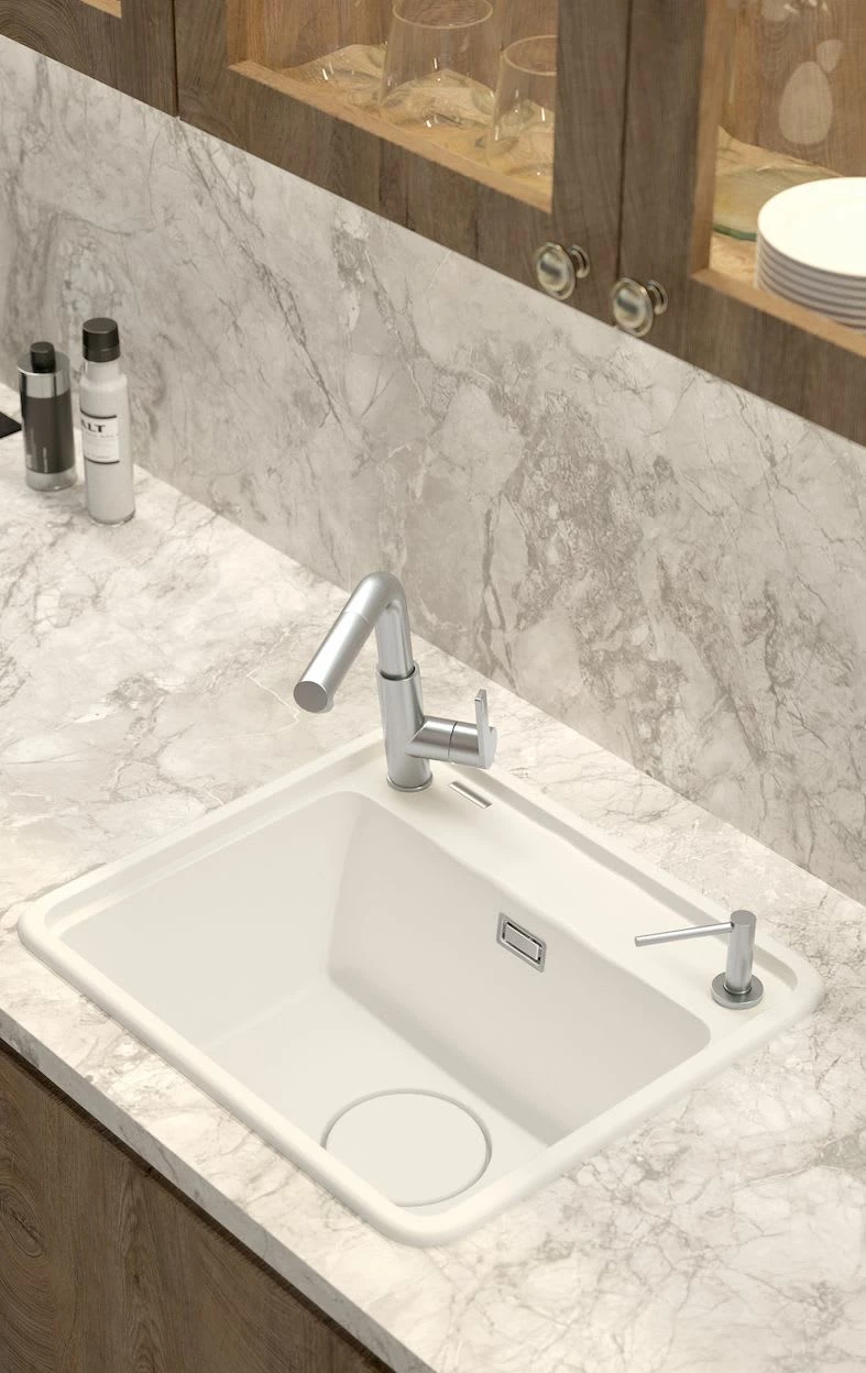Såpedispenser i krom for montering direkte på vasken eller på kjøkkenbenken. 500 ml.