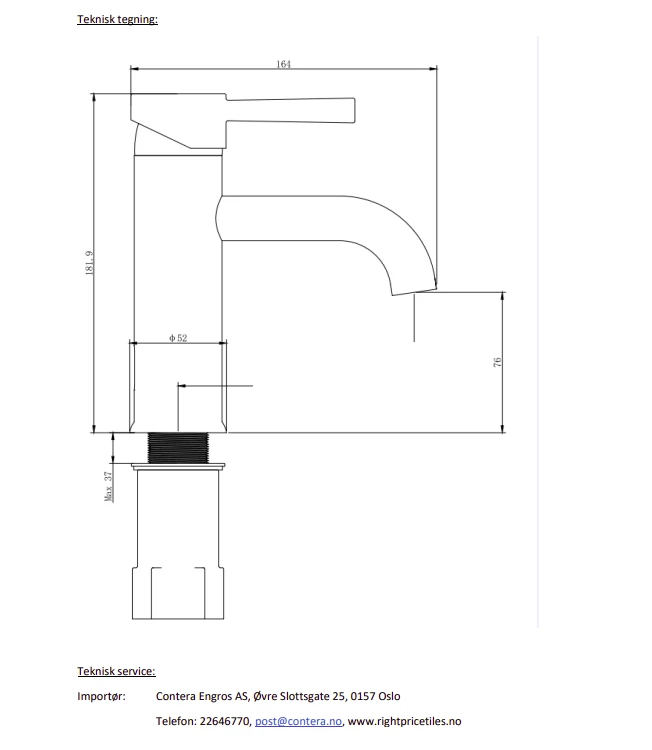 Det medfølger en ekstra kranmutter i forpakningen for tilpassing til enhver servantvask.