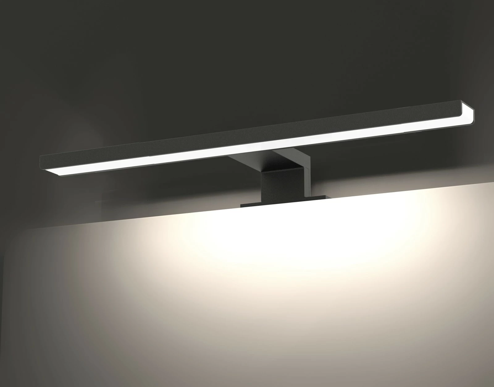 Ledlys er strømbesparende og har lang levetid, kan ikke dimmes. Med 3000 kelvin og 400-600 lumen. Dimensjoner 60 cm bred og 10 cm dyp.