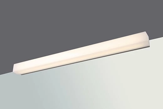 Ledlys med innebygget driver som er godkjent til bruk på våtrom (IP44). Kan monteres på toppen av speilskap, klipse rett på speil eller monteres på vegg. Ledlys er strømbesparende og har lang levetid. Kan ikke dimmes. Med 3000 kelvin og 1100-1200 lumen. Dimensjoner 59 cm bred, 3,8 cm høy og 5,4 cm. dyp.