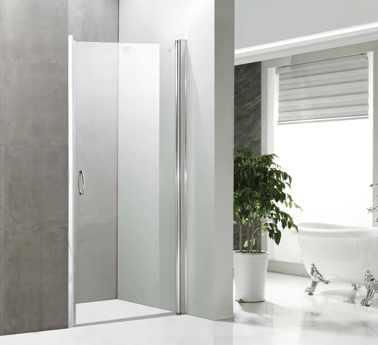 Eksempel: en 80 cm dør utgjør minimum 82,5 cm og maksimum 85 cm. Veggfestene har en justeringsmulighet på 2,5 cm til sammen på begge sider av glassdøren.