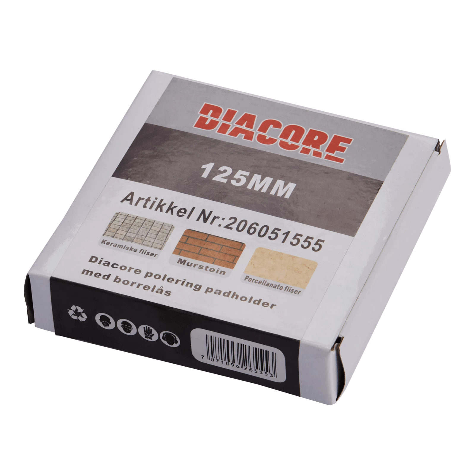 Diacore padholder for poleringspad M14 tilkobling og borrelås for feste av poleringspad. Diameter 125mm.