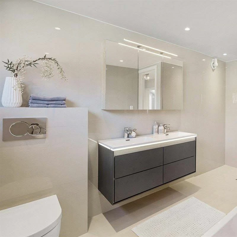 Eivissa Ivory Lustre 60×60 kan også kombineres med matte fliser i samme farge, , og