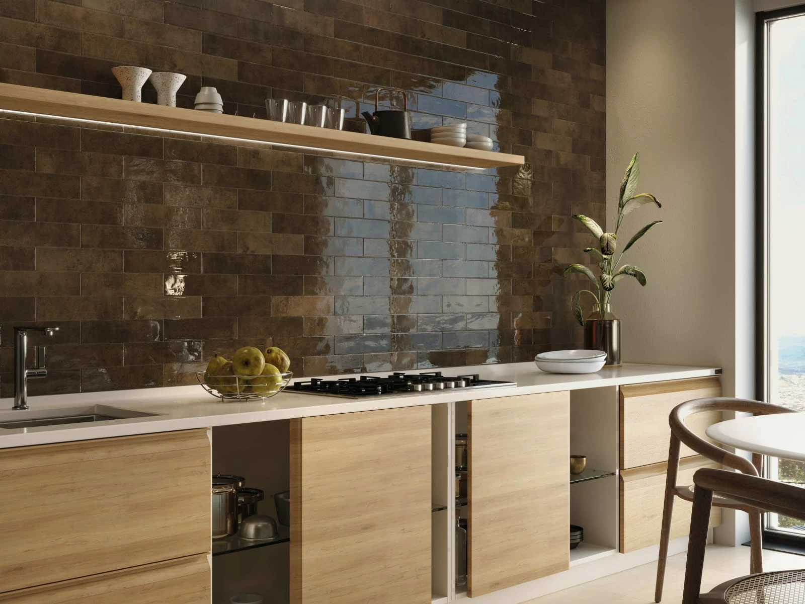 Gemstone Agate 7,5×30 har en ujevn blank overflate og passer både til moderne og klassiske kjøkken.