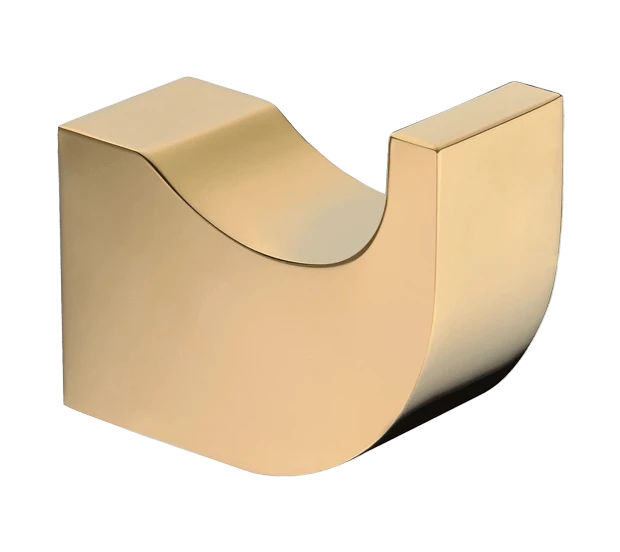 Delikat knagg i høy kvanlitet. Produsert i messing med gullfarget overflate. Monteres på vegg med skjult oppheng og vedlagte skruer.