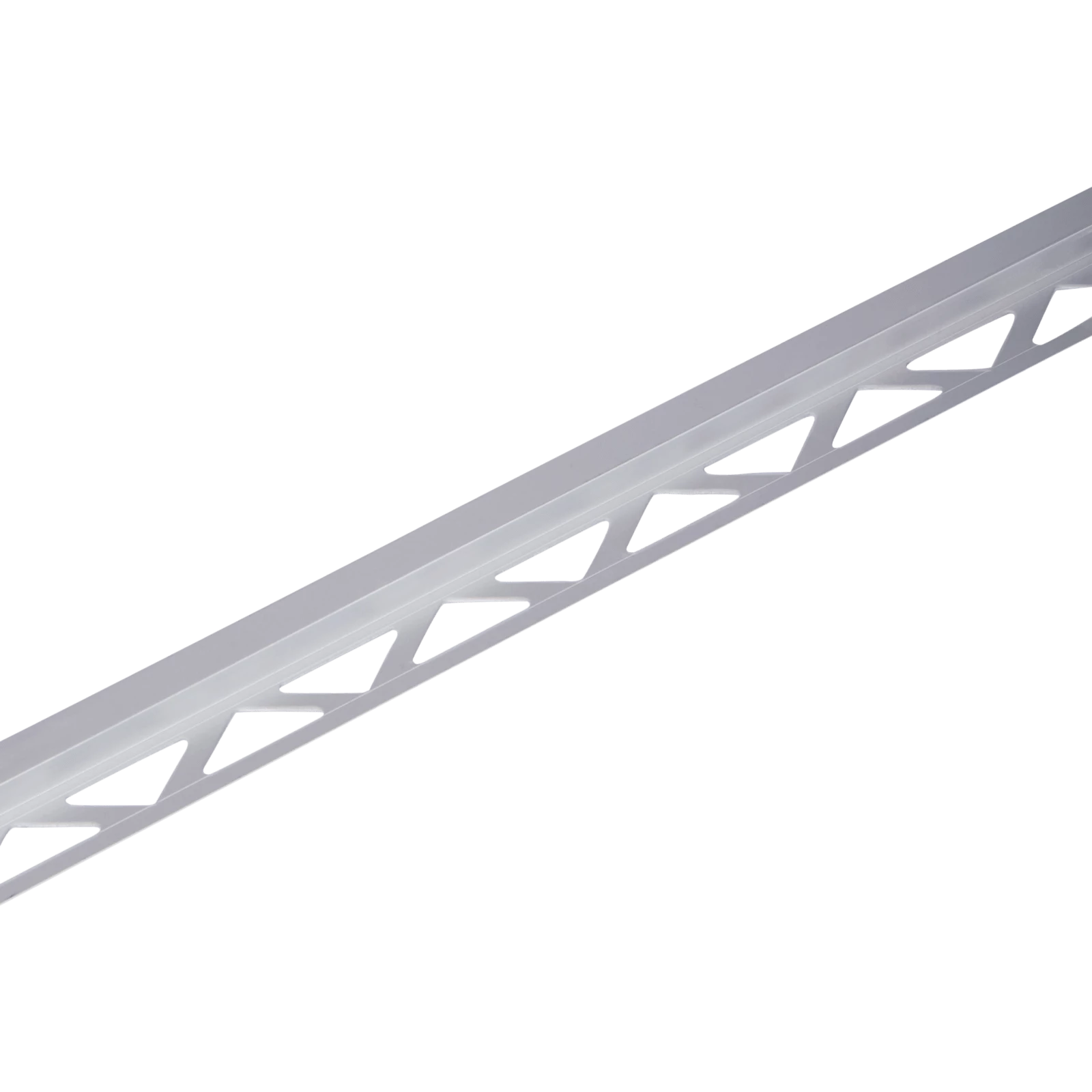 Kantet hjørnelist i matt aluminium. For bruk på utvendig hjørne ved flislegging. Med denne hjørnelisten får du en optimal overgang i hjørnet. Tykkelse: 9 mm. Lengde 2,5 m.