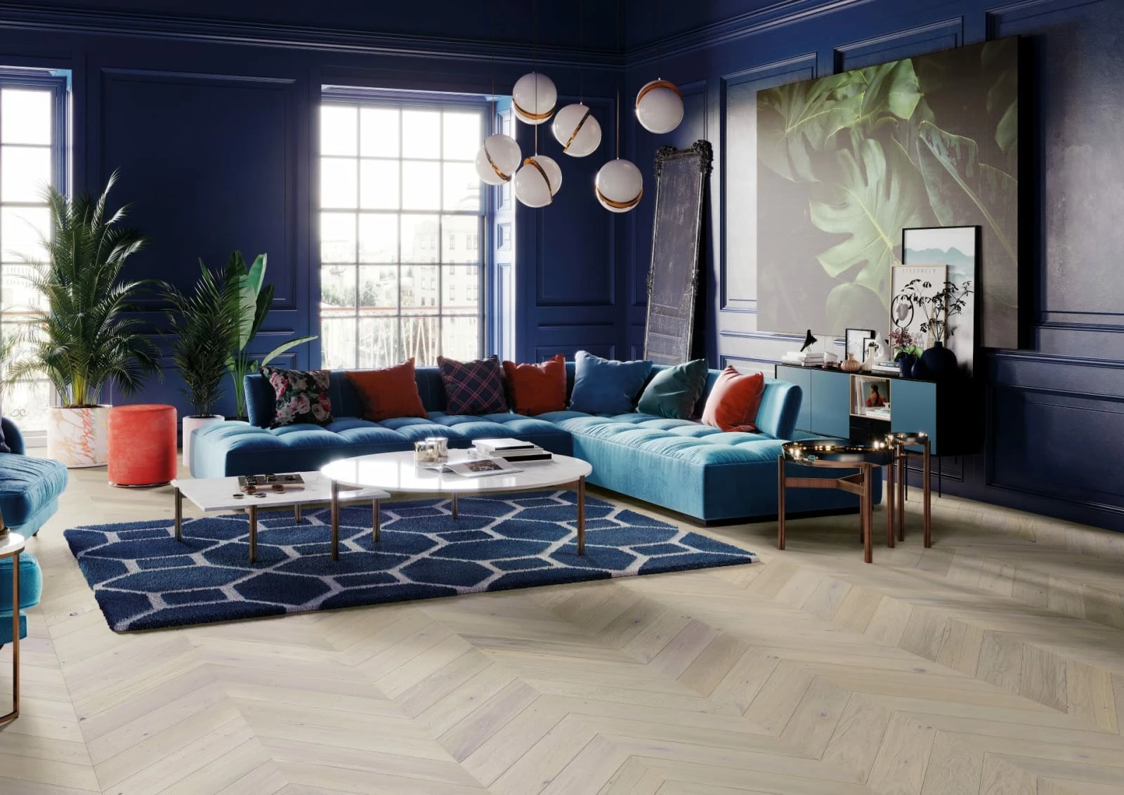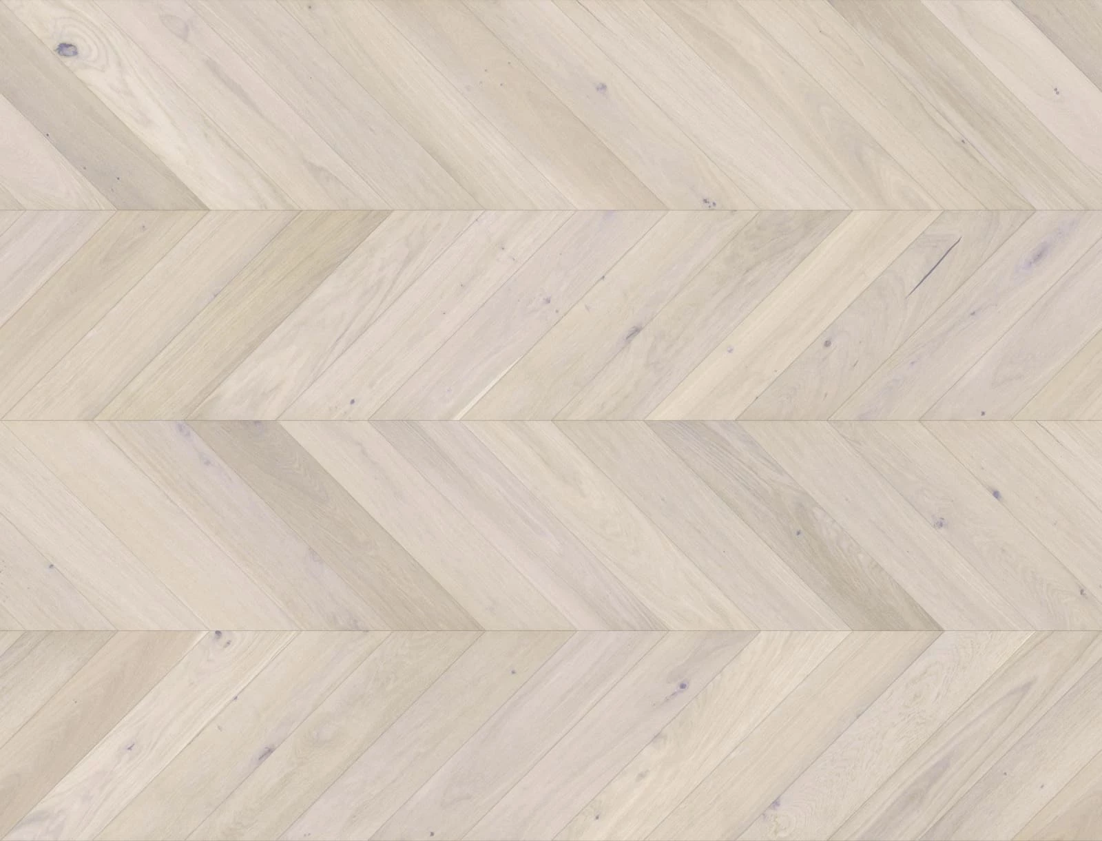 Med vår lys hvitfargede Holz Eik Tåkedis Trivor Chevron eikeparkett kan du forvandle hjemmet ditt til et moderne og elegant sted. Parketten er perfekt for deg som ønsker en lys og luftig atmosfære i hjemmet ditt, samtidig som du ikke ønsker å ofre kvalitet og stil. Velg Chevron eikeparkett for et vakkert og slitesterkt gulv som vil gi hjemmet ditt en moderne og elegant touch.