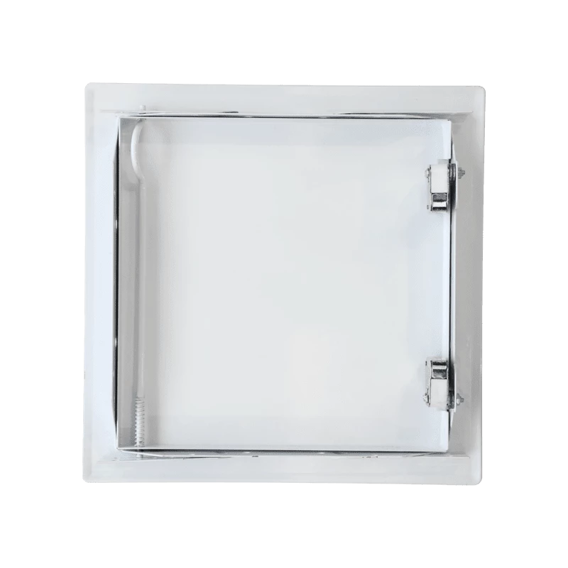 Elegant inspeksjonsluke med skjult push-up åpne og lukke mekanisme. Farge: Hvit. Størrelse: 15×15 cm.