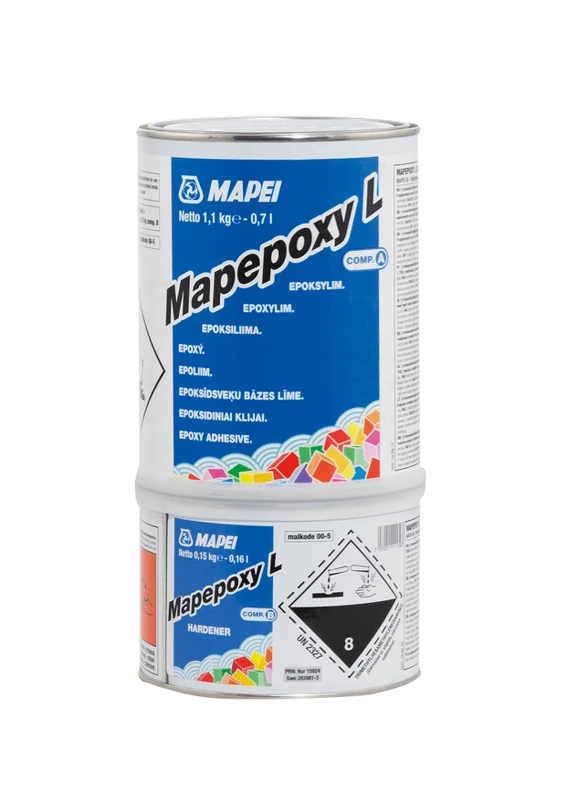 Mapepoxy L brukes for kraftoverførende liming av – fersk betong til herdet betong eller stål (monolittisk liming) – herdet betong til herdet betong – stål til herdet betong – stål til stål. Mapepoxy L er også egnet brukt til forankring av bolter i borehull, eller som beskyttende belegg på betong.