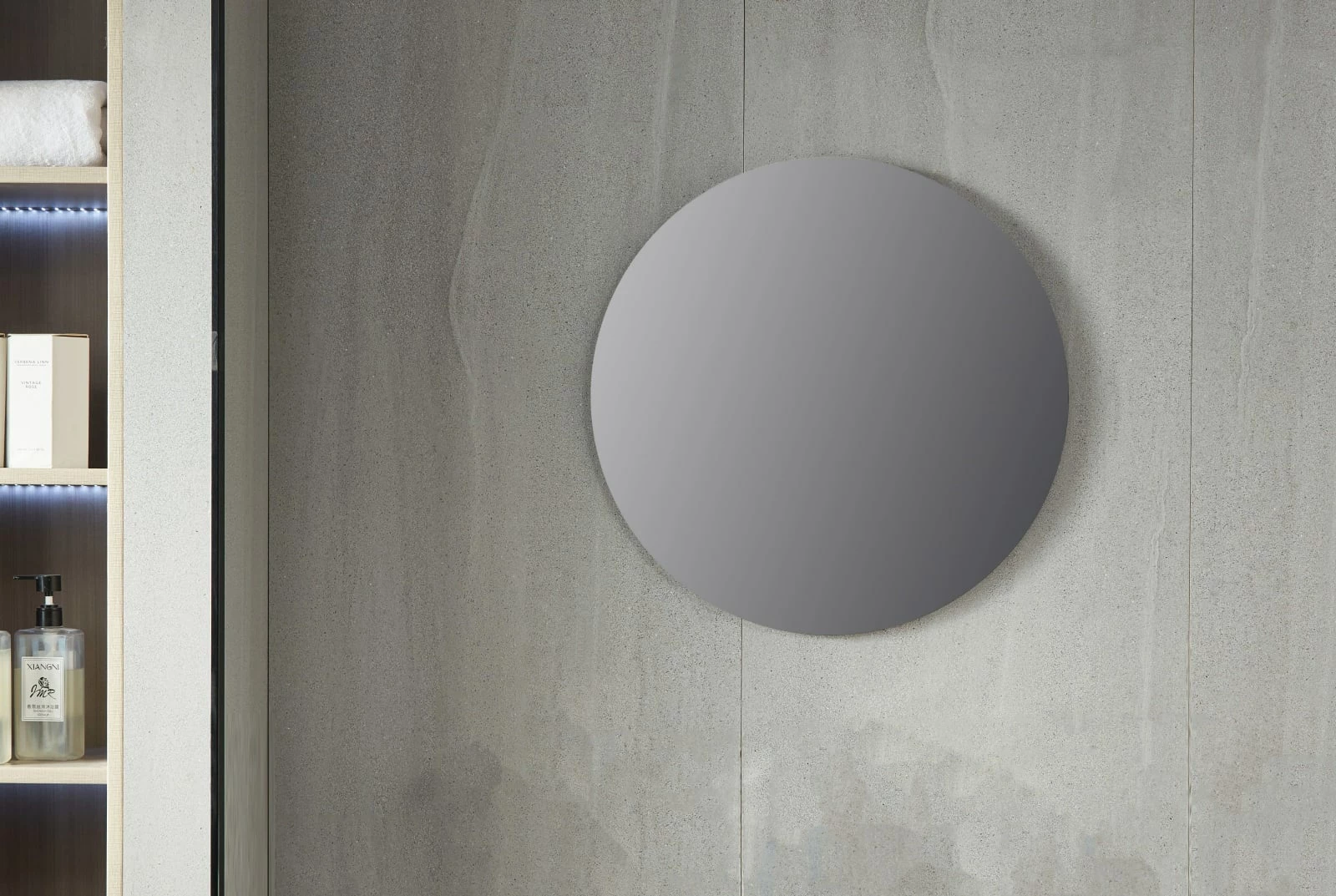 Enkelt rundt kobberfritt kvalitetspeil. Våre ledlys kan monteres på toppen av speilet.