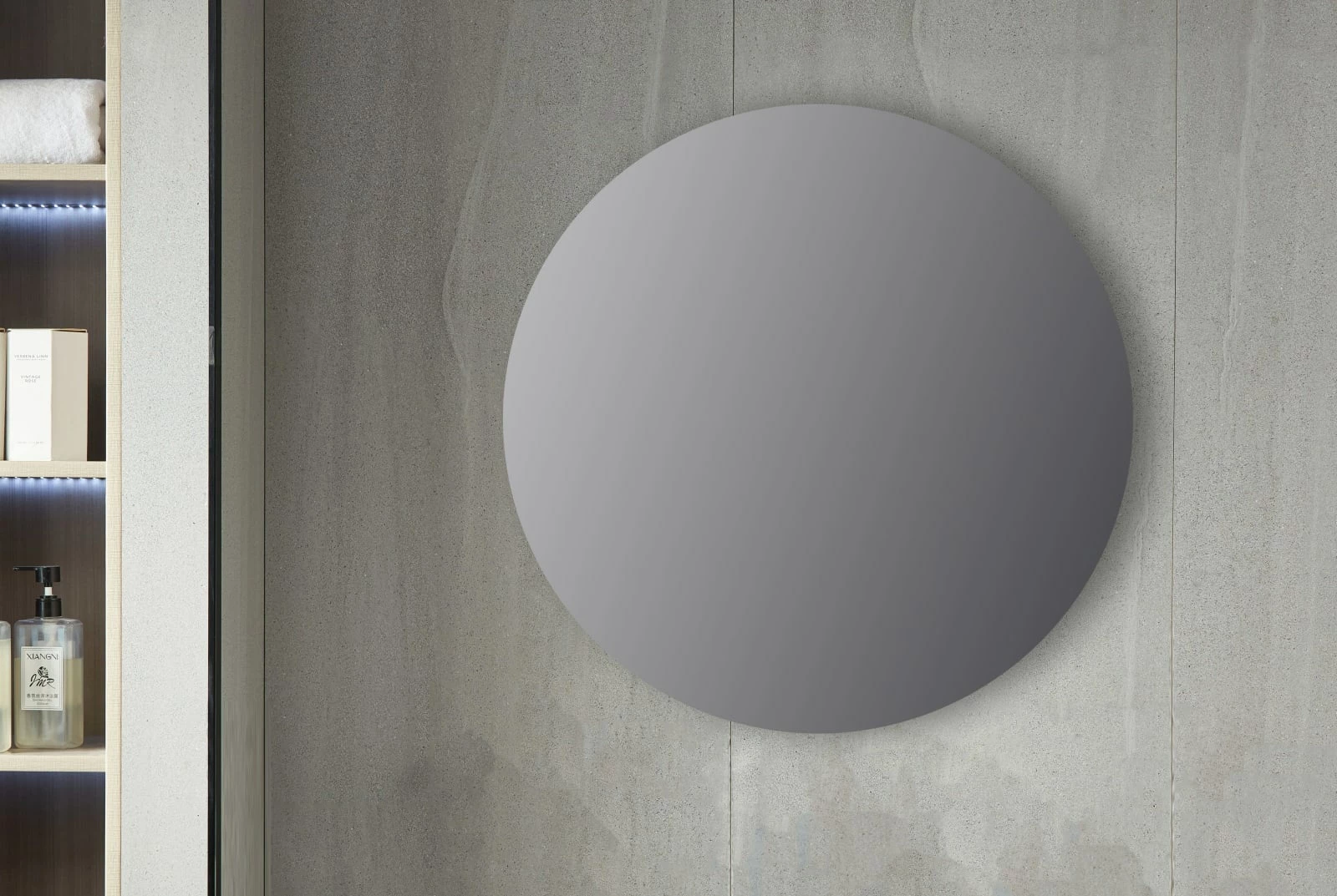 Enkelt rundt kobberfritt kvalitetspeil. Våre ledlys kan monteres på toppen av speilet.