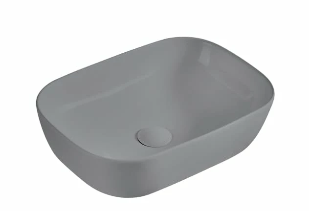 En delikat vask som blender inn i baderommet på grunn av den duse gråfargen. Servanten er svært enkel å montere på en benkeplate eller topplate. 47 cm bred, 33 cm dyp, 14 cm høy.