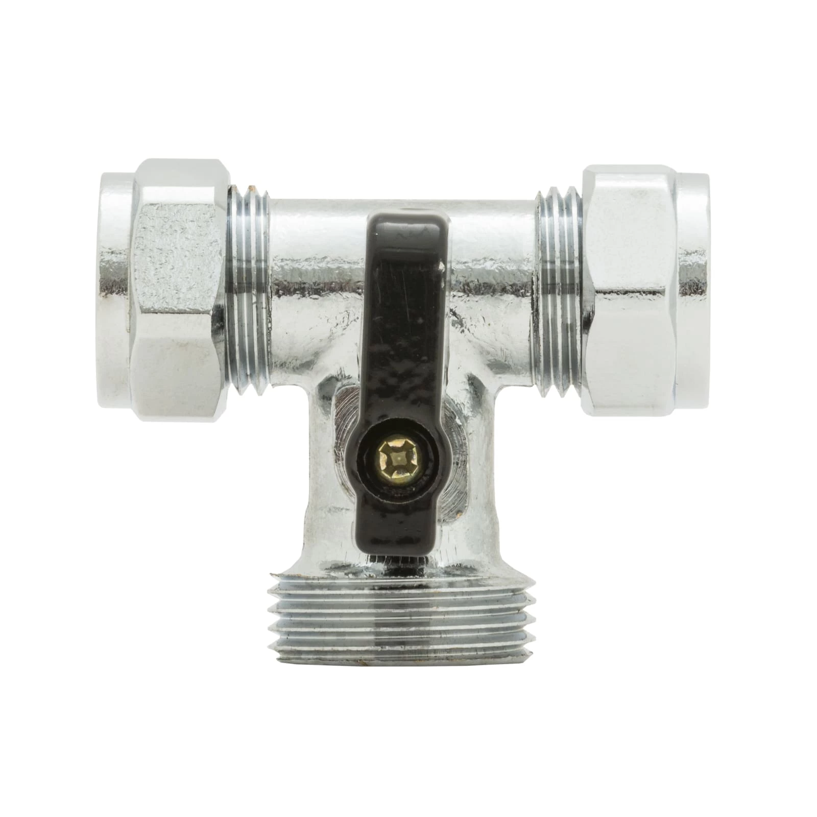 T-stykke med kran med uttak for oppvaskmaskin fra ett eksisterende rør inne i en kjøkkenbenk med 3/4″ utvendig gjenge for slangen. 10mm inn og 10mm vann ut og 3/4″ til oppvaskmaskin.