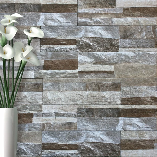 Fargene og formen på flisen gjør at den ser ut som laftet skifer når den er satt opp. Tigris Grey 15×45 passer godt som en fasade/bekledningsflis.