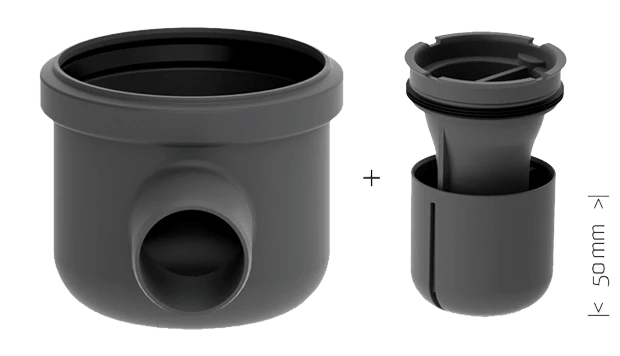 Utløpshus hjørne vannrett ø50mm fra Unidrain